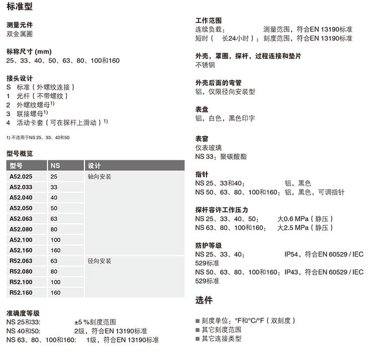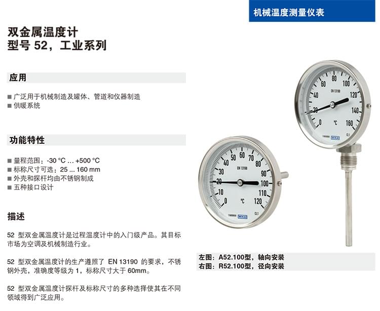 EN13190 全系列溫度計(jì) A52 R52 徑向軸向雙金屬溫度計(jì)
