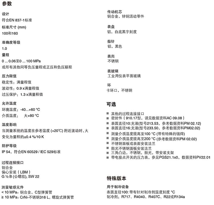 2. 膜片壓力表,化學(xué)工業(yè)型,表頭不充液/充液,高過壓保護(hù)壓力表,針對UHP應(yīng)用:422.12 432.50 432.56 423.36 423.25