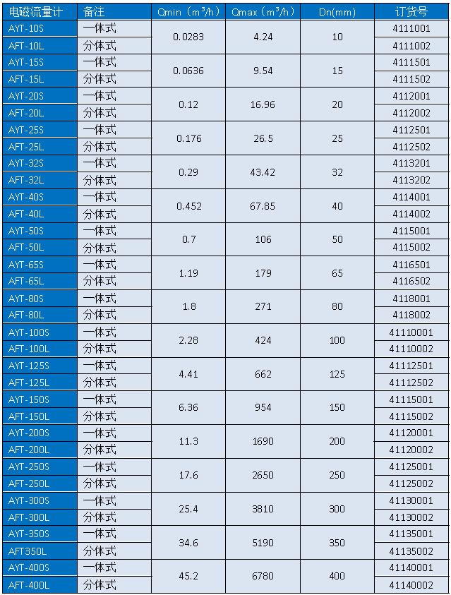 【一體式電磁流量計】電磁流量計APURE電磁流量計選型表