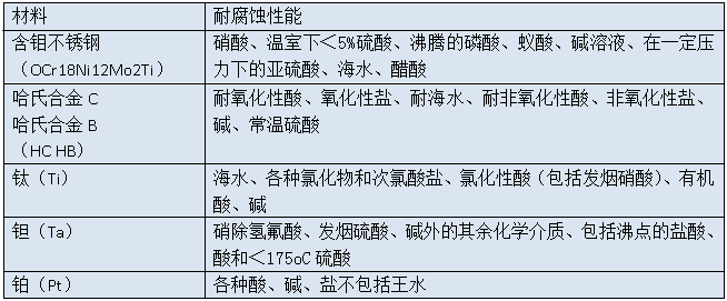 含鉬不銹鋼、鈦(Ti)、鉭(Ta)、哈氏合金 (H)、鉑(Pt)或其他特殊電極材料