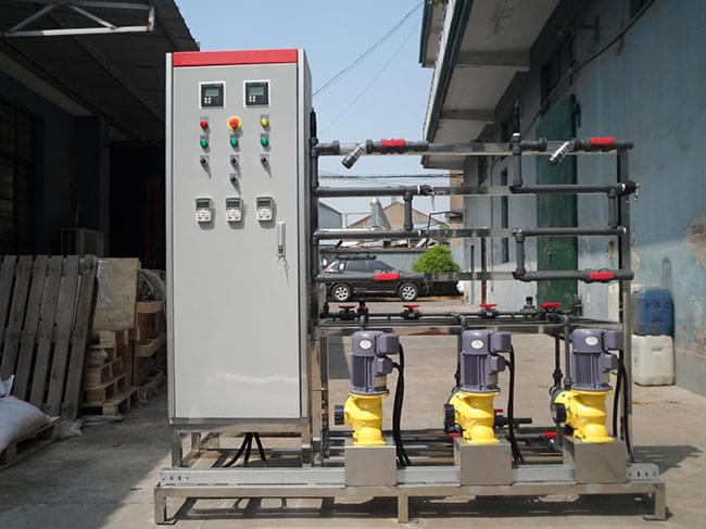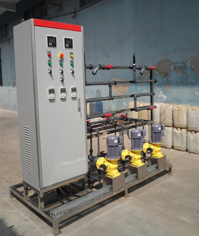 循環冷卻水,冷凍水根據不同循環比例、控制方式可實現定時定量加藥、遠程數據控制加藥,三種藥劑分三通道加藥,每個通道根據不同的時段,不同的藥劑量設置遠程控制加藥。