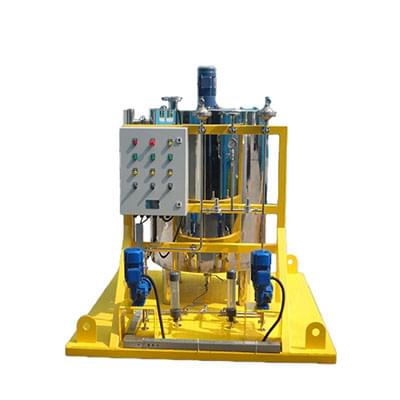 加藥裝置是以計(jì)量泵為主要投加設(shè)備、將溶藥箱、攪拌器、液位計(jì)、安全閥、止回閥、壓力表、過濾器、緩沖器、管路、閥門、底座、扶梯、自動(dòng)監(jiān)視系統(tǒng)、電力控制系統(tǒng)等按工藝流程需要組裝在一個(gè)公共平臺上,形成一個(gè)模塊,即所謂的撬裝式組合式單元(簡稱“撬體”)。按需要將定量的藥劑放入攪拌溶液箱內(nèi)進(jìn)行攪拌溶解,溶解完畢后再通過計(jì)量泵送至投加點(diǎn)的工作過程,加藥量的大小可自由任意調(diào)節(jié),以滿足不同加藥量的場所