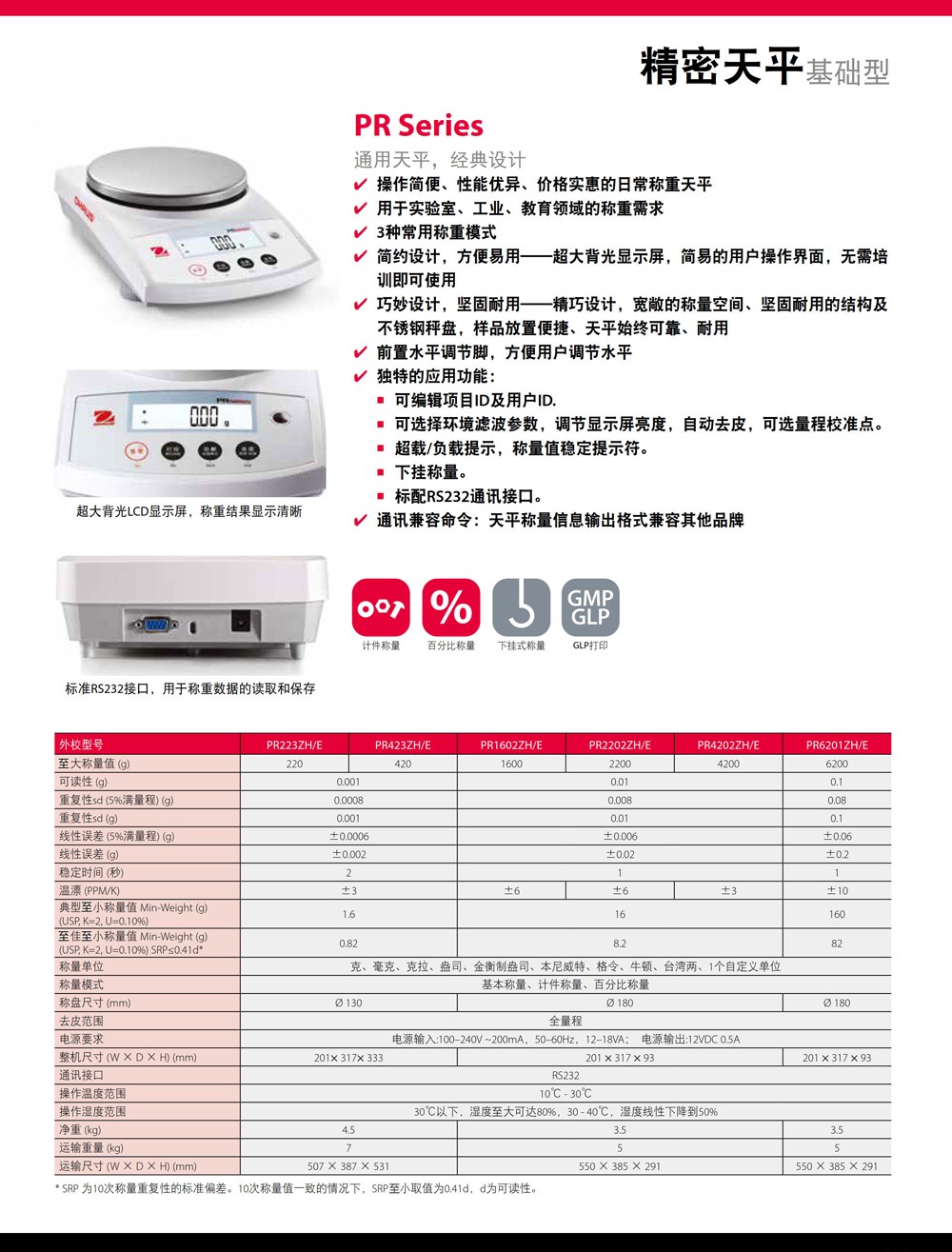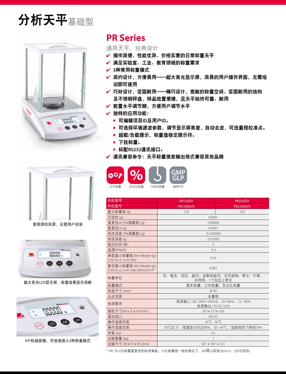 奧豪斯稱重天平PR系列分析天平實驗室基礎電子秤工業通用精密天平